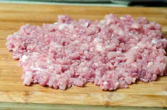 - Bước 1: Thịt nạc vai đem rửa sạch rồi băm nhỏ hoặc xay đều được. Sau đó đem thịt ướp với một chút muối, đường, bột ngọt, nước mắm, ướp khoảng 15 phút cho ngấm gia vị.