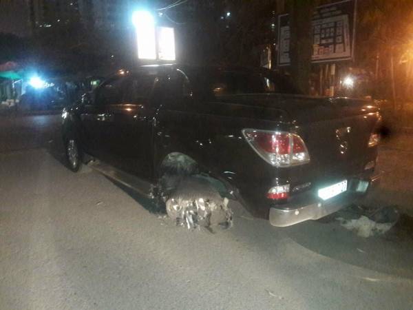 Xe ô tô bán tải gây tai nạn rồi bỏ chạy.