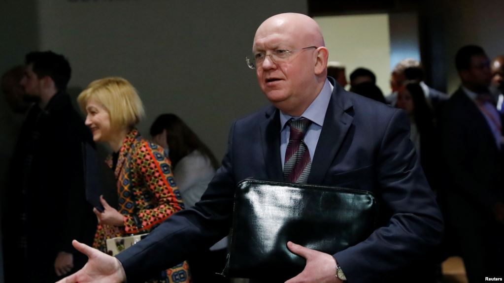 Phát biểu sau cuộc họp kín của Hội đồng Bảo an Liên hiệp quốc do Bolivia đề nghị bàn về các đe dọa hành động quân sự của Tổng thống Mỹ Donald Trump ở Syria, ông Nebenzia cảnh cáo tình hình còn nguy hiểm hơn vì binh sĩ Nga đang hiện diện ở Syria.