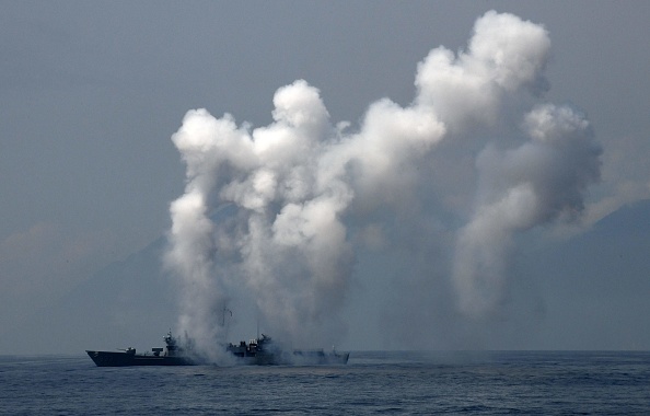 Một tàu khu trục nhỏ đang tập trận gần căn cứ hải quân Suao tại Yilan, ở miền đông Đài Loan, nơi nữ Tổng Thống Thái Anh Văn đã quan sát cuộc thao dượt quân sự với đạn thật ngày thứ Sáu. (Getty Images)