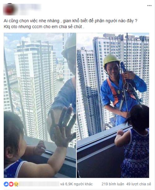 Suốt ngày treo người trên những tòa chung cư cao tầng giữa lòng Sài Gòn trong mùa nắng bà chắn, khoảnh khắc anh chạm bàn tay chai sạn của mình vào bàn tay của một cô bé sau mặt kính dày có lẽ thật đáng nhớ.