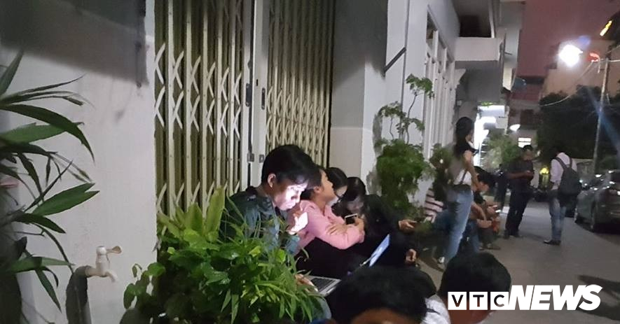 Một số phóng viên báo chí đang ngồi tại khu vực nhà ông Minh - nguyên Chủ tịch UBND TP Đà Nẵng để nắm thông tin. (Ảnh: Thanh Hải)