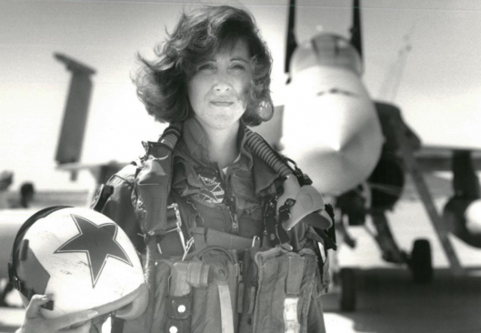 Cơ trưởng Tammie Jo Shults, từng phục vụ trong Hải quân Hoa Kỳ trong bức ảnh chụp năm 1992 đứng cạnh một chiếc tiêm kích FA-18A. (Ảnh Reuters)