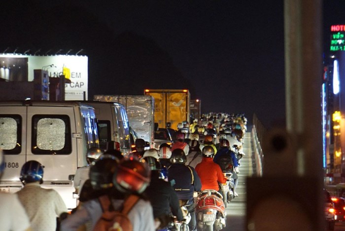 Hình ảnh xe máy, ô tô chen chúc qua cầu vượt Lăng Cha Cả