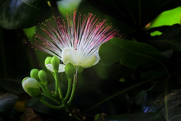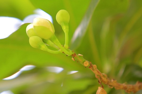 Vào ban ngày bàng vuông chỉ là những nụ trắng muốt. Bàng vuông thường nở hoa vào mùa xuân nhưng cũng có những năm hoa nở kéo dài đến mùa hè.