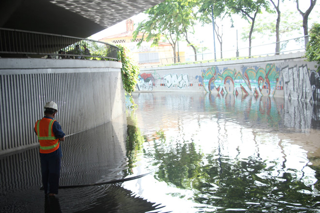 Rạng sáng 2/5, trận mưa kéo dài ở trung tâm TP.HCM khiến 2 hầm chui cầu Khánh Hội (quận 1) và cầu Bình Triệu (quận Bình Thạnh) ngập nặng. Trong đó, hầm chui cầu Bình Triệu mới đưa vào sử dụng vào ngày 10/4.