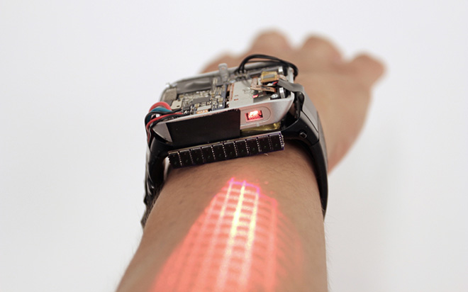 Nguyên mẫu LumiWatch chiếu giao diện tương tác lên da cánh tay để biến nó thành màn hình cảm ứng. Nó được phát triển bởi các nhà nghiên cứu tại Đại học Carnegie Mellon và nói rằng phép chiếu có thể tạo ra một giao diện lớn hơn 5 lần so với màn hình smartwatch hiện nay.