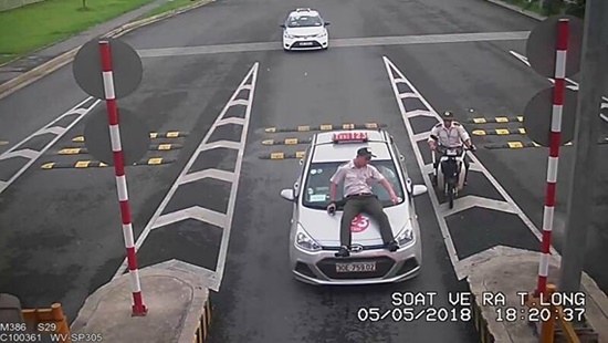Tuy nhiên, tài xế taxi này không chấp hành mà có những lời lẽ qua lại với anh N., rồi bất ngờ nhấn ga, tông thẳng vào nhân viên này. Thấy anh N. dùng bộ đàm thông báo cho Đội an ninh đến hỗ trợ, tài xế tiếp tục lùi xe và đâm lần nữa khiến anh N. bị hất lên nắp capo. Sau đó, tài xế bỏ chạy ra hướng trạm soát vé Bắc Thăng Long trong khi anh N. vẫn đang ở trên nắp capo của xe, tay bám vào cần gạt nước.