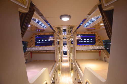 Lấy ý tưởng từ “Cung điện bay” của Quốc vương Brunei, mỗi phòng trong cung điện di động mang tên cung điện của các quốc gia trên thế giới. Với 22 giường trong mỗi cung điện di động, hành khách có thể nằm thẳng lưng, ngồi thư giãn thoải mái bởi thiết kế giường đặc biệt có cơ chế gập duỗi linh hoạt có lợi cho tuần hoàn máu của não bộ và cơ thể đồng thời tích hợp massage.