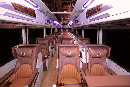 Dòng xe này lấy ý tưởng từ tiêu chuẩn ghế các hãng hàng không. 26 ghế không chỉ sang trọng khi được bọc da nhập khẩu từ Anh quốc mà còn có kích thước rộng, độ ngả lưng lớn kết hợp cùng bệ để chân đem đến sự thoải mái cho hành khách.