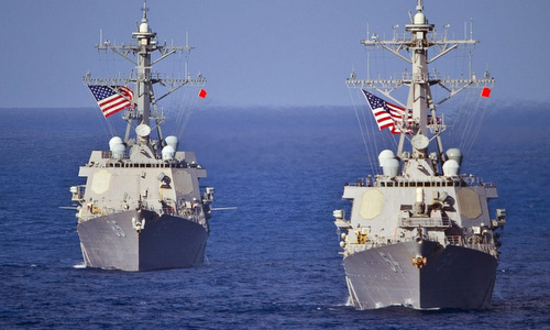 Tàu khu trục Mỹ di chuyển trên Biển Đông. Ảnh: USNI.