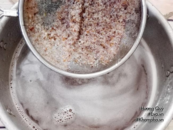 Bước 2: Cho cua vào máy xay hoặc giã bằng cối cho nhuyễn. Cho thêm nước vào lọc lấy nước cua. Đặt nồi nước cua lên bếp, thêm một thìa bột canh khuấy nhẹ và đun lửa vừa để cua đóng gạch.