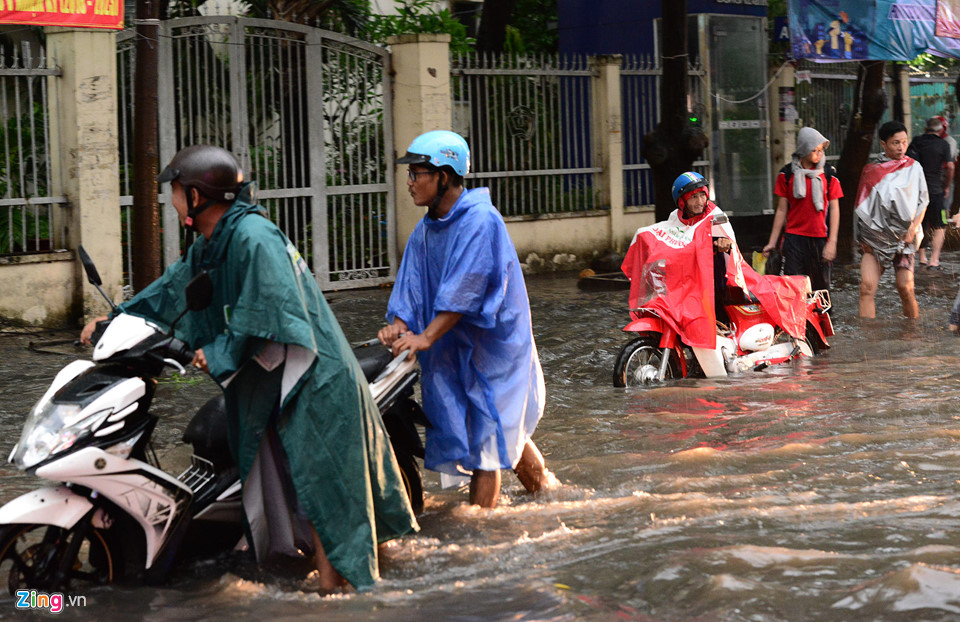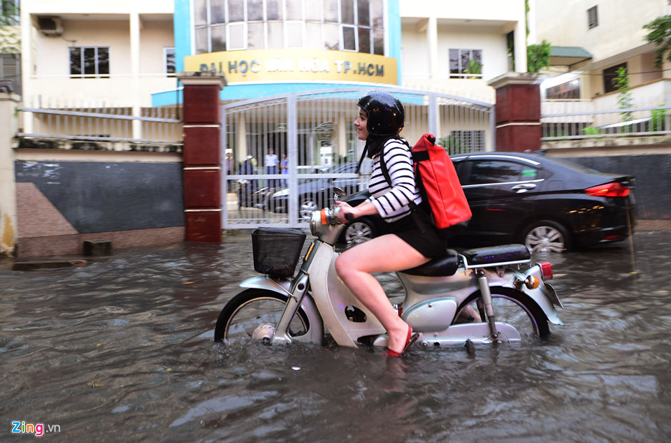 Sau trận mưa lớn kéo dài khiến nhiều tuyến đường TP.HCM ngập úng sâu. Nhiều người nước ngoài phải lội nước để về nhà. Dưới đây là những hình ảnh được ghi lại sau trận mưa lớn.