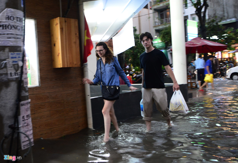 Old  Default Hình ảnh người nước ngoài lội nước bì bõm về nhà sau cơn mưa ở TP.HCM