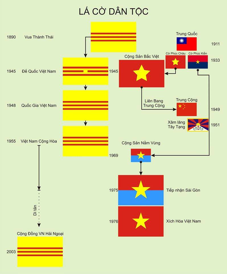 Tinh thần của 1 đân tộc thường thì tiếp nối qua lá cờ. Ai cũng có thể hiểu, chính trị sẻ luôn biến chuyển theo nhịp điệu của thời gian... Chiếc áo không làm nên thầy tu. Vì lẻ đó, màu cờ nào có thể sẻ 1 lần nữa xuất hiện ở VN trong tương lai thì không quan trọng cho lắm, sự mong muốn quyết định của người dân Việt là làm sao có được 1 nước Việt-Nam không độc tài = 1 nhà VN tự do trong mọi khía cạnh được đặt dưới 1 luật pháp minh bạch và 1 nhân quyền được thế giới công nhận và ủng hộ.
