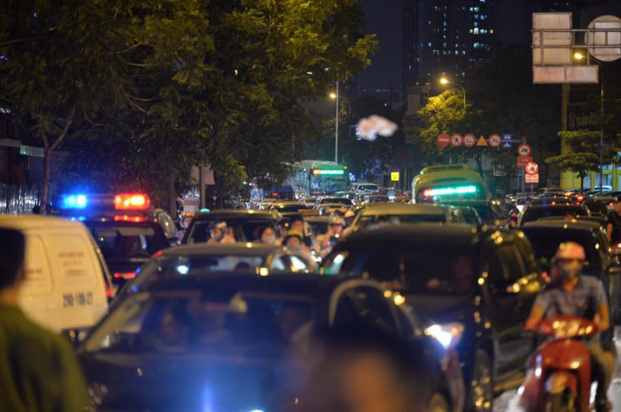 Cùng với cảnh sát PCCC, lực lượng chức năng sở tại cũng đã phong tỏa tuyến đường Lê Văn Lương hướng từ cầu vượt Thái Hà về Hoàng Đạo Thuý để phục vụ công tác chữa cháy, khiến giao thông qua khu vực ùn tắc.