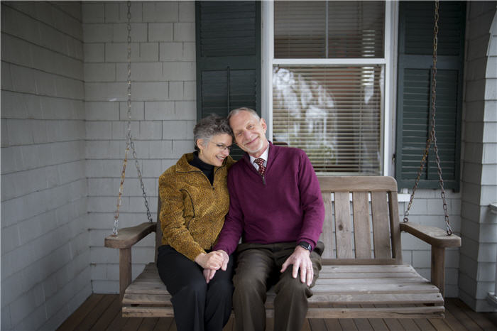 “Những người hài lòng nhất trong mối quan hệ của họ ở tuổi 50 là người khỏe mạnh nhất ở tuổi 80,” Robert Waldinger nói với vợ Jennifer Stone. (Ảnh: Rose Lincoln / Harvard Staff )
