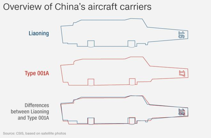 “Nó không được thiết kế để trở thành một thách thức cho sức mạnh của Mỹ tại Thái Bình Dương, bởi vì đơn giản nó không cùng đẳng cấp với các tàu sân bay của Mỹ,” Sam Roggeveen, một học giả cấp cao tại Viện Lowy, Australia nói với phóng viên CNN. Type 001A “hiện đại hơn” so với tàu Liêu Ninh – tàu sân bay đầu tiên của Trung Quốc, vốn được mua lại từ Ukraine - và có thiết kế lớn hơn và nặng hơn để có thể chở được nhiều máy bay hơn. Về cơ bản, nó dựa rất nhiều vào hình mẫu là tàu Liêu Ninh.