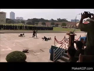 hahahah!! lúc tập thì 1 thằng đánh 4, 5 thằng .. lúc thiệt thì cả đám đánh dân không những còn bị ruợt chạy như chó .. hahahahaha