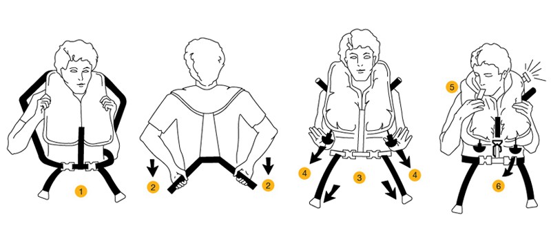 Hướng dẫn sử dụng áo cứu hộ và chỉ được thổi phồng khi đã rời khỏi máy bay nhé