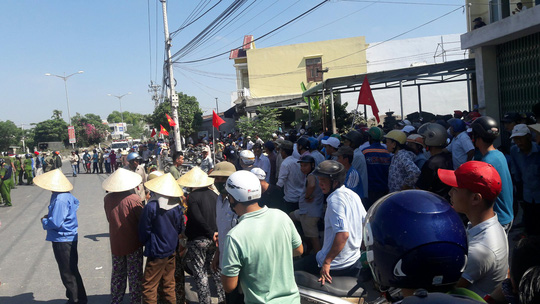 Sáng 22-5, hàng trăm người dân tập trung dọc tuyến đường ĐT 607 (đoạn qua địa phận phường Điện Nam Trung, thị xã Điện Bàn, tỉnh Quảng Nam) theo dõi lực lượng chức năng bảo vệ thi công tuyến đường ĐT 607.