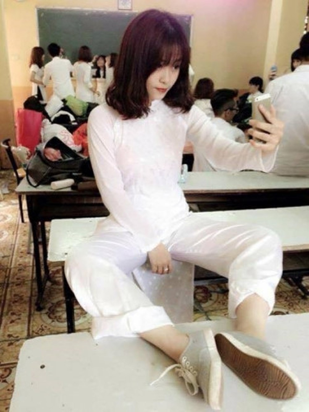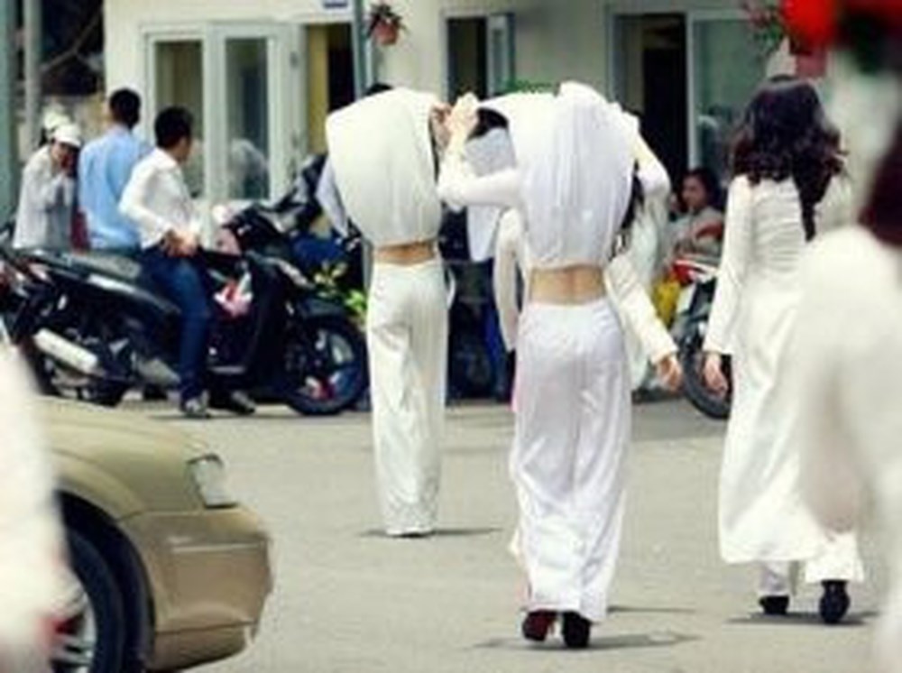 Hình ảnh nữ sinh mặc áo dài phản cảm dịp cuối năm gây nhức mắt