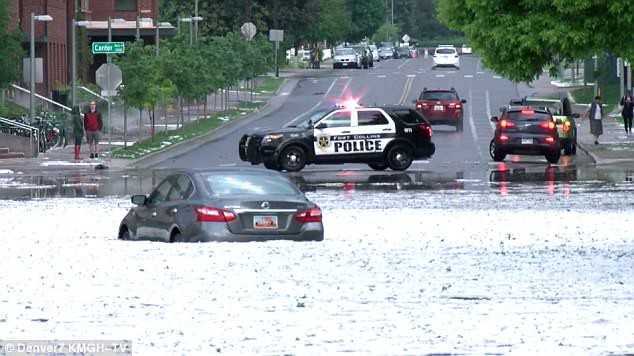 Xe hơi ngập trong nước ở Colorado. (Ảnh: Dailymail)