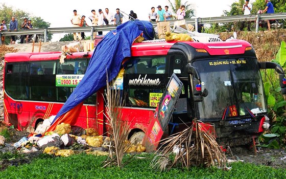Tại thời điểm trên, khi đang lưu thông trên Quốc lội 1A theo hướng Nam - Bắc đoạn qua huyện Tuy An (Phú Yên), một chiếc xe khách giường nằm BKS 76B-00.700 chở trên 40 hành khách bất ngờ mất lái lao xuống vùng ruộng lầy sâu khoảng 7m khiến 4 người bị thương. Tất cả hành khách trên xe hoảng loạn, cố tìm cách thoát ra ngoài. Do va chạm mặt ruộng có độ lún bới bùn lầy nên xe ô tô không bị va đập mạnh và không lật nghiêng.