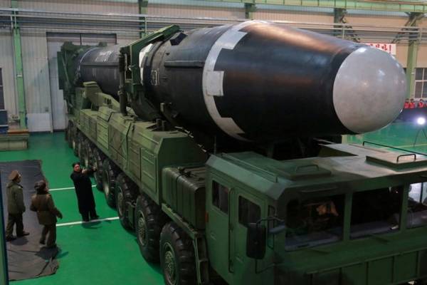 Nhà lãnh đạo Kim Jong-un thị sát tên lửa đạn đạo liên lục địa Hwasong-15, ngày 30.11.2017. Ảnh: KCNA/Reuters