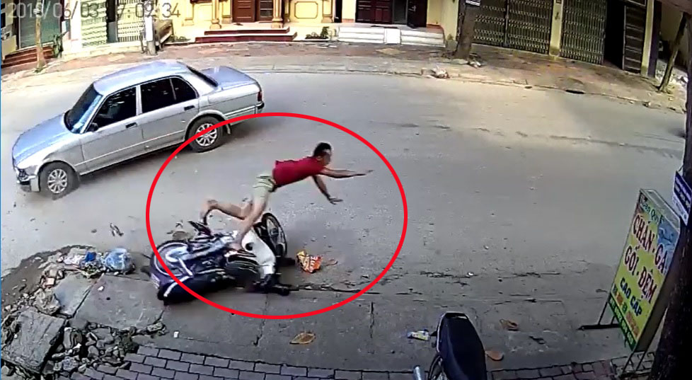 Old  Default Ô tô tông người đi xe máy "bay" như trong phim hành động