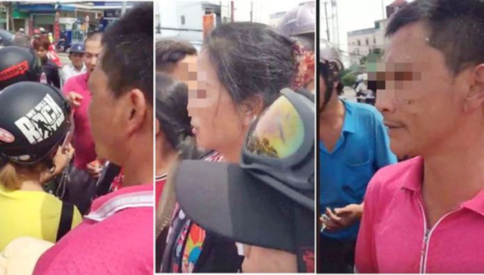 Nhóm khách Trung Quốc bị người dân Nha Trang vây lại ở chợ Vĩnh Hải. (Hình: Người Lao Động)
