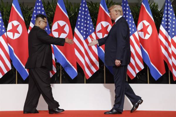 Những người tinh ý sẽ nhận thấy không có sự khác biệt quá lớn về chiều cao khi Tổng thống Mỹ Donald Trump gặp gỡ, bắt tay và đi cùng lãnh đạo Triều Tiên Kim Jong-un tại hội nghị thượng đỉnh lịch sử ở khách sạn Capella, Singapore hôm nay, theo Korea Times.