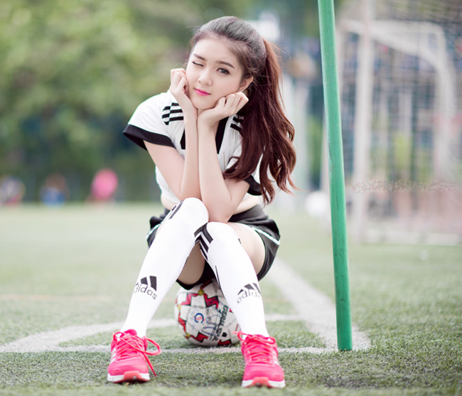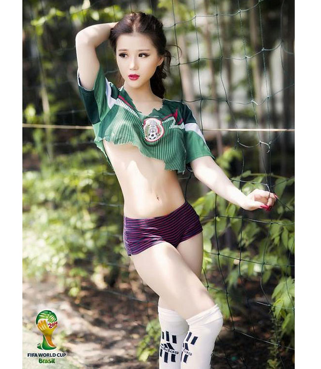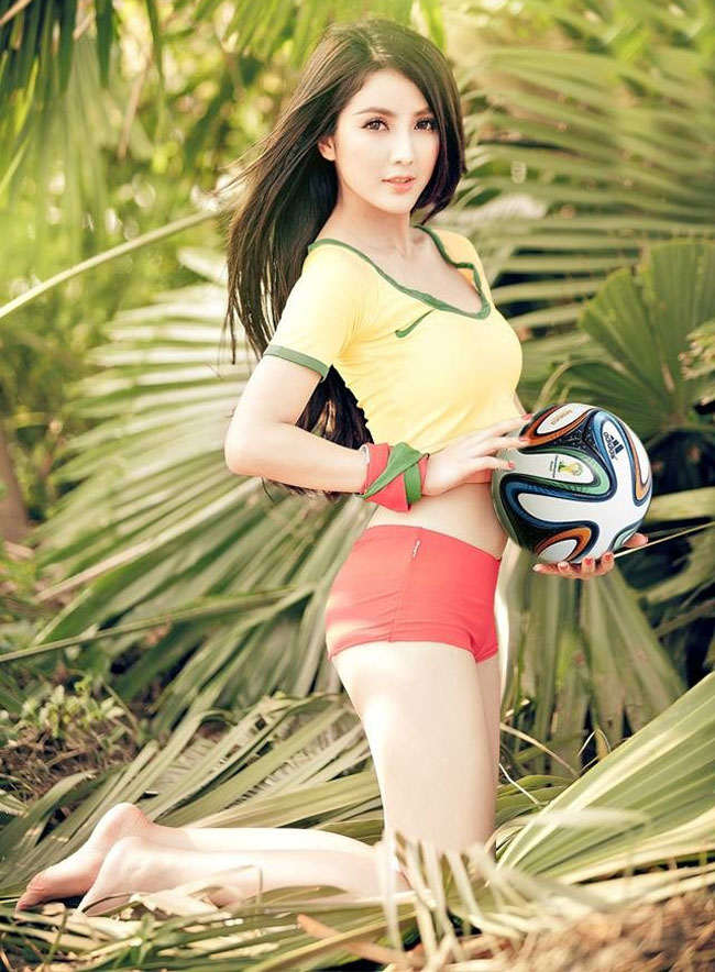 Hot girl Linh Phương mặc trang phục thể thao sexy chụp ảnh cổ vũ World Cup 2014.