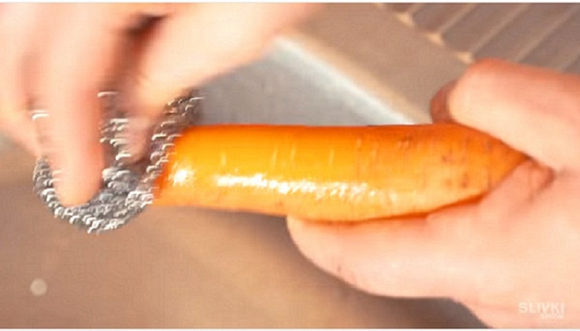 Để gọt vỏ các loại rau củ vỏ mỏng thật dễ dàng, chỉ cần dùng một miếng rửa chén kim loại thường dùng để cọ nồi niêu xoong chảo là có thể đạt được hiệu quả như bạn mong muốn!