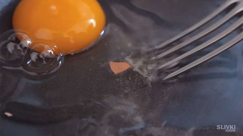 Khi đập trứng vào chảo hoặc vào bát, đôi lúc do không cẩn thận nên làm rơi cả mảnh vụn vỏ trứng lẫn vào, nếu muốn lấy ra cũng hề không dễ dàng gì. Thật ra, chỉ cần dùng hai mảnh vỏ trứng vừa đập làm dụng cụ là có thể dễ dàng vớt lên rồi.