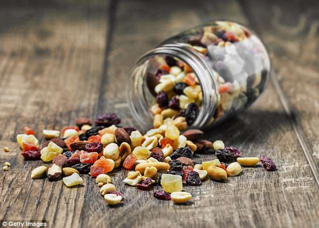 Ví dụ tốt nhất của cô là một hoặc hai miếng của viên trái cây, hạt vỏ cứng và hạt, một phần tư cốc hoa quả hỗn hợp hoặc một cốc nước ép rau hoặc trái cây tươi.
