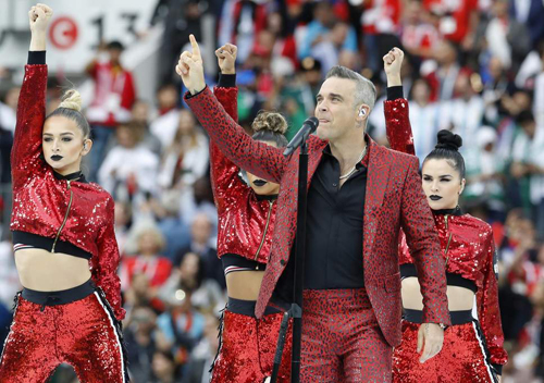 Robbie Williams biểu diễn mở màn World Cup 2018. Ảnh: AP.