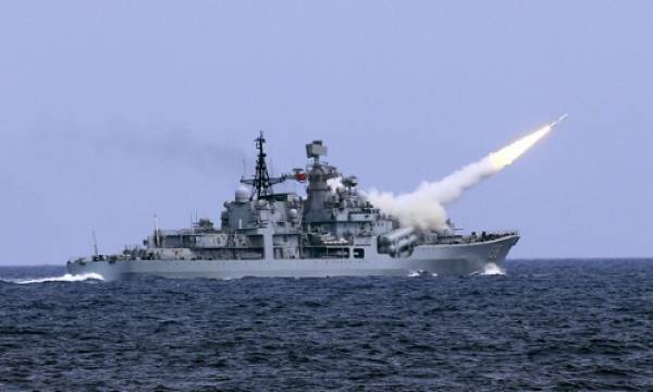 Tàu chiến Trung Quốc bắn tên lửa trong một cuộc diễn tập hồi tháng 1/2016. Ảnh: Xinhua.