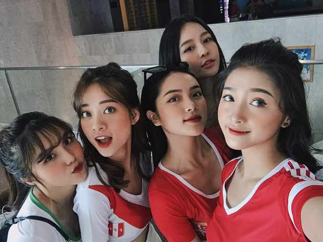 Khoảnh khắc hậu trường của 5 cô gái xinh đẹp trong trang phục cổ vũ nhận được sự quan tâm của đông đảo dân mạng. Nhiều người không ngần ngại ví von dàn cổ động viên cho World Cup năm nay chỉ toàn hot girl.