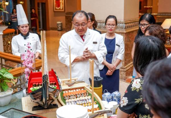 Nói đến Nhật Bản là bạn nhớ ngay đến món sushi. Sushi gồm phần cơm và hải sản sống. Ông Masahiro Taguchi, Tổng giám đốc Sheraton Hà Nội, là một người con Nhật Bảnđã không ngần ngại chia sẻ bí quyết cách làm món ăn này.