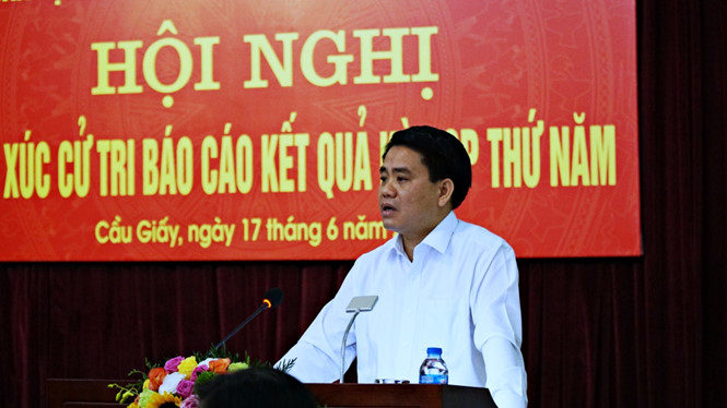 Phát biểu chiều 17.6 với tư cách đại diện lãnh đạo thành phố Hà Nội, tại cuộc tiếp xúc cử tri quận Cầu Giấy để báo cáo kết quả Kỳ họp thứ 5 của Quốc hội, Chủ tịch UBND TP. Hà Nội Nguyễn Đức Chung đã trao đổi về các vụ việc gây rối trật tự an ninh trên địa bàn thủ đô và một số tỉnh, thành phố thời gian gần đây.