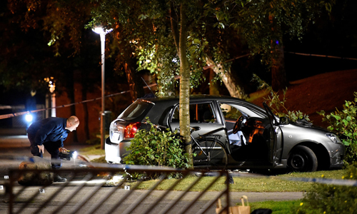Cảnh sát khám xét một chiếc xe liên quan tới vụ xả súng ở thành phố Malmo, Thụy Điển tối ngày 18/6. Ảnh: TT News Agency/Reuters.