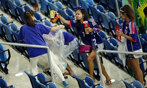Người dân Nhật Bản không chỉ ý thức tại nước nhà mà thậm chí còn cả ở ngoài thế giới. Nhật Bản ngày càng chứng tỏ họ có những fan tuyệt vời nhất khi ở lại dọn sạch khán đài sau trận ra quân thắng lợi của đội nhà.