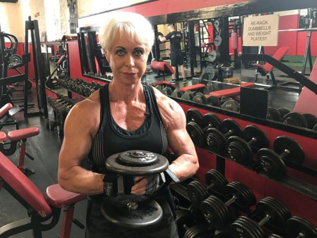 Dù mới phải thay khớp hông năm ngoái vì chứng viêm khớp nhưng bà Angela vẫn có thể nâng tạ 65 kg