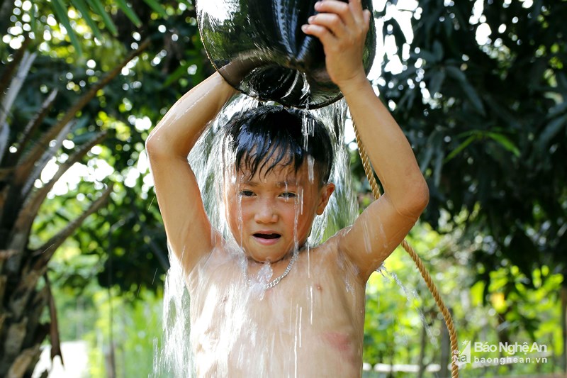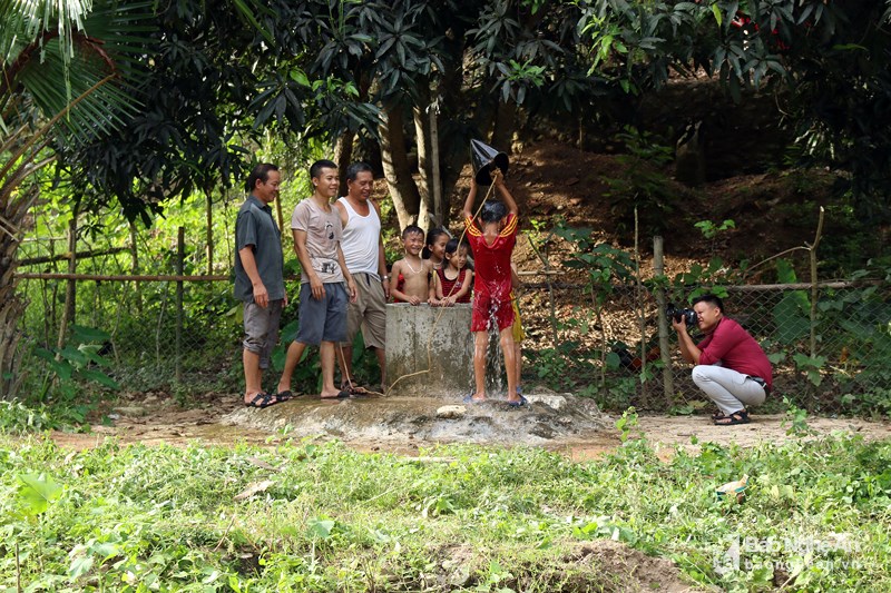 Những ngày hè, đám trẻ trong bản thường tập trung quanh giếng tắm mát và đùa nghịch. Ảnh: Đào Thọ