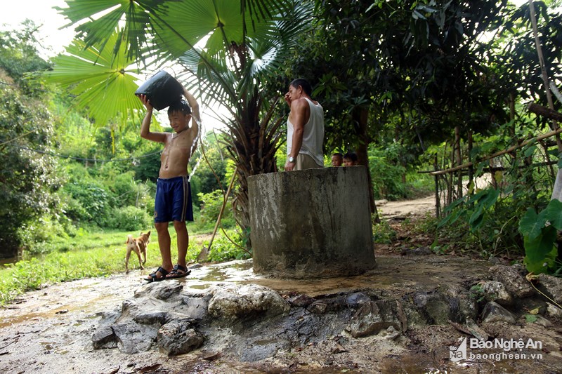 Bản Khe Ngậu (xã Xá Lượng - Tương Dương) gồm 154 hộ với gần 700 nhân khẩu từ gần 50 năm nay vẫn luôn gắn bó với giếng nước nhỏ nằm bên dòng khe Ngậu. Ảnh: Đào Thọ