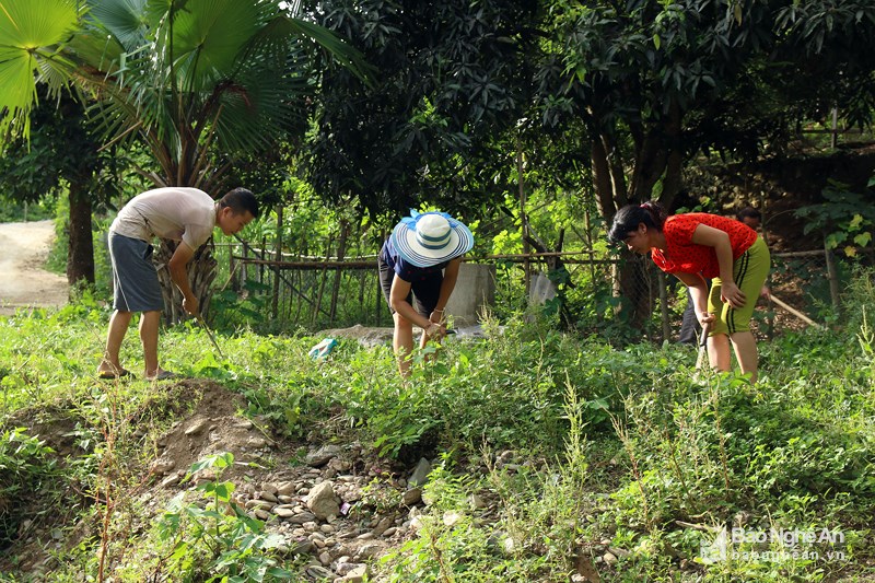 Hàng ngày, để giữ gìn vệ sinh, người dân thay nhau cuốc cỏ, quét dọn xung quanh giếng. Ảnh: Đình Tuân
