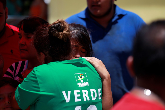 Người thân của các nạn nhân an ủi nhau gần hiện trường vụ nổ súng làm thiệt mạng nhiều người ở Ciudad Juarez, Mexico ngày 23-6 - Ảnh: REUTERS