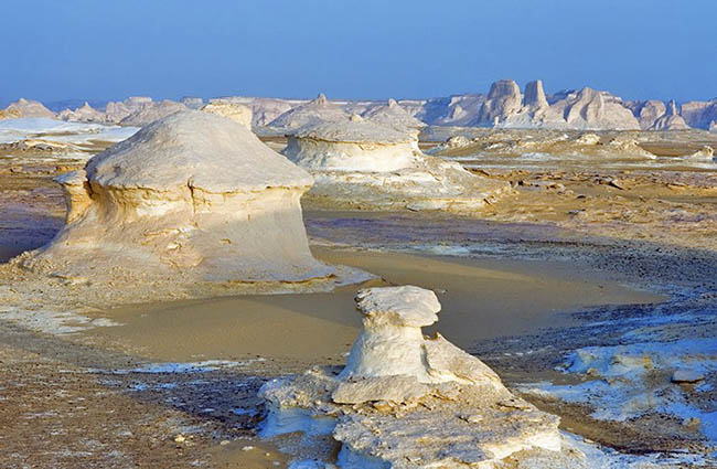Sa mạc trắng là kỳ quan tuyệt vời của thiên nhiên, đây là nơi có những ngọn núi siêu thực hiện ra giữa một vùng cát khô cằn trắng xóa. Cảnh quan nơi đây còn có nhiều tảng đá trắng lấp lánh, nhìn từ xa giống như một tảng băng trôi nằm giữa sa mạc.