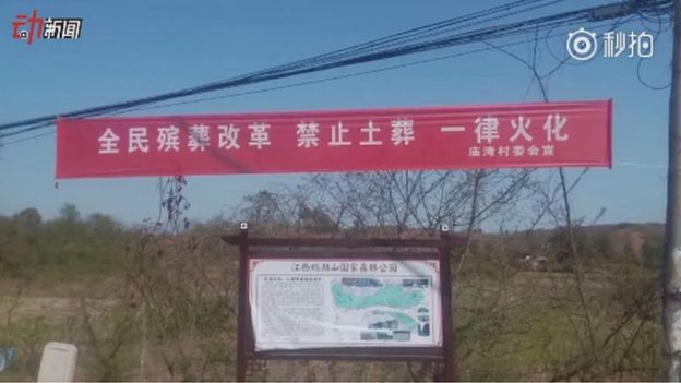 Băng rôn viết "Cả nước đang tiến hành cải cách mai táng - cấm chôn chất và luôn luôn hỏa táng."